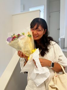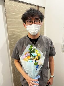 石川先生は優しい笑顔で花束を受け取ってくれました。