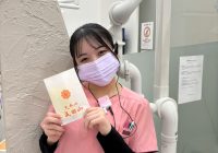 先日、歯科衛生士国家試験を控えている当院スタッフの西村さんに、合格祈願のお守りとメッセージカードをお渡ししました。